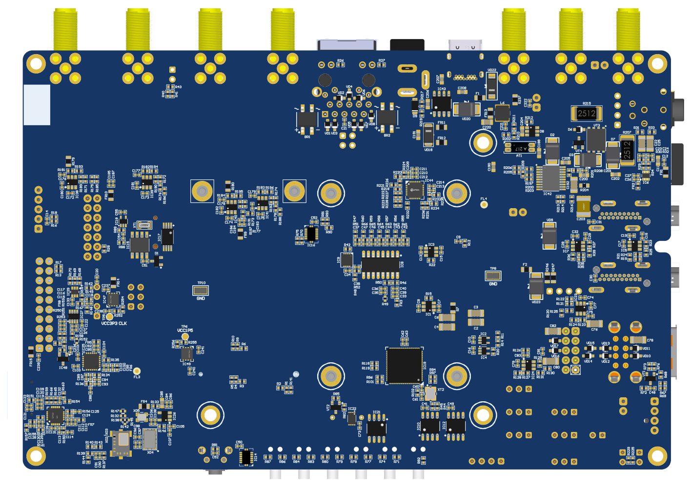 Coaxial RF (4x SMA female + 4x U.FL female) connectors for RF front end