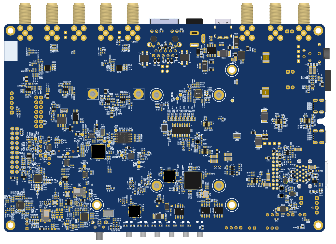 Coaxial RF (4x SMA female + 4x U.FL female) connectors for RF front end