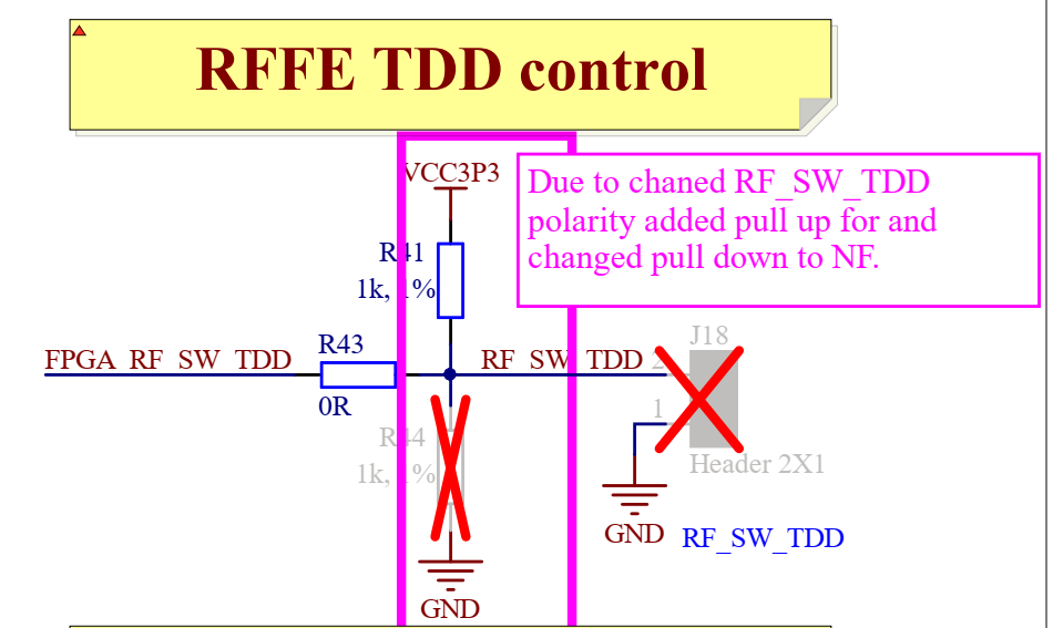 Due to changed RF_SW_TDD polarity a pull-up resistor was added and pull-down resistor was removed from BOM as shown in Figure 28.