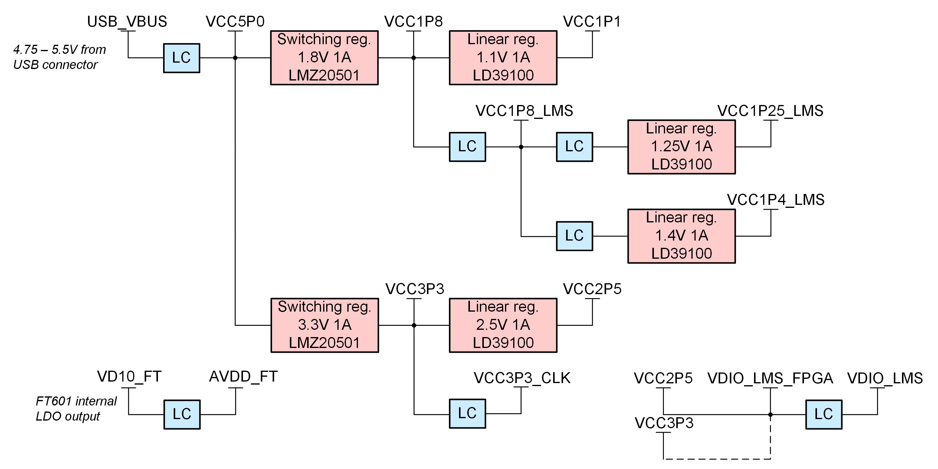 Figure 10. LimeSDR Mini v2.4 board power distribution block diagram