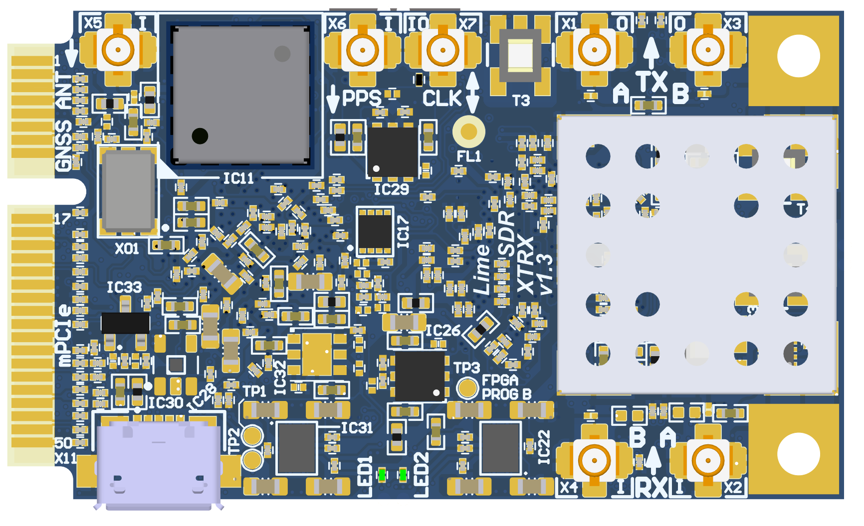 Figure 1: LimeSDR XTRX v1.3 board top view